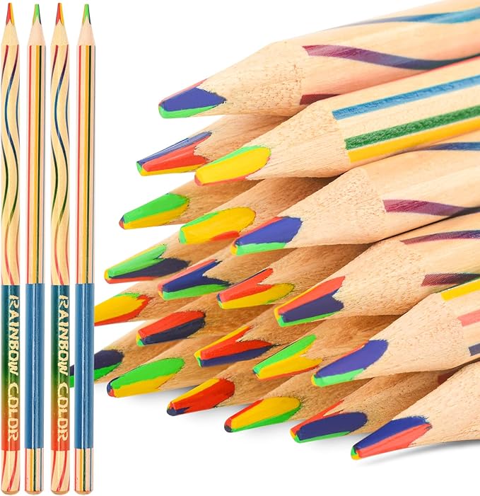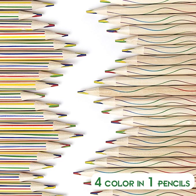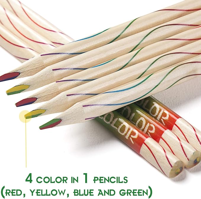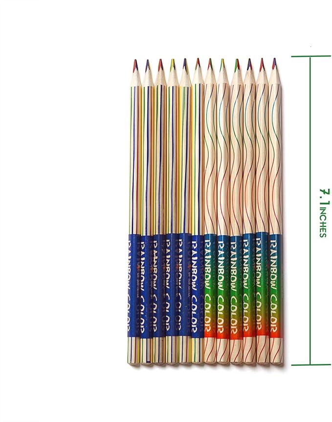 レインボーペンシル、ボックスに30本、長さ18cm/7.1インチ。 各鉛筆には、赤、黄、青、緑の4色があります。 筆記時に鉛筆を回転させることで、様々な色を描くことができます。