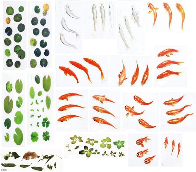 パッケージ内容:合計19枚のステッカー、金魚の鯉をテーマにした13枚、残りは葉用6枚です。