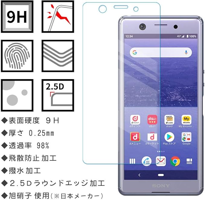 Xperia Ace SO-02L 強化 ガラスフィルム 液晶保護フィルム 耐衝撃 キズ防止 [厚さ0.25mm / 硬度9H / 2.5Dラウンド加工 / 入り数 1枚] エクスペリア エース | oioioichan