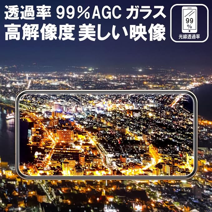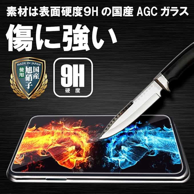 【高強度】2.5Dラウンドエッジ加工でガラスの縁の欠けや破損から保護。硬度9H国産AGCガラス、5層のレイヤー加工で鋭利な傷を保護、飛散防止加工でガラスの飛び散りを防ぎ液晶破損とケガから保護。