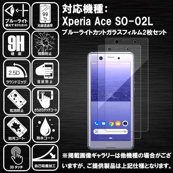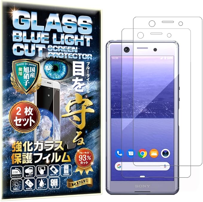 【RISE】【2枚】【ブルーライトカット 93%】Xperia Ace SO-02L 用 ガラスフィルム ブルーライトカット フィルム 保護フィルム 強化 ガラス 透過率99% 高光沢 日本製 旭硝子 硬度9H 2.5Dラウンドエッジ 自動吸着 気泡ゼロ 飛散防止 指紋防止 撥水撥油 3D タッチ 対応 | oioioichan