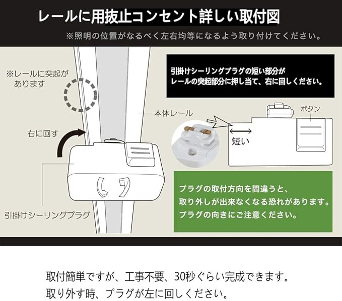 Abishionライティングバー用抜け止めコンセント 引掛シーリングプラグ ダクトレール用 取付簡単(15A 125V 50/60Hz専用まで) 引掛シーリングボディ ライティングレール用 PSE認証(白い6個入り) | oioioichan