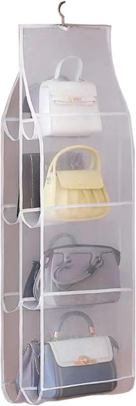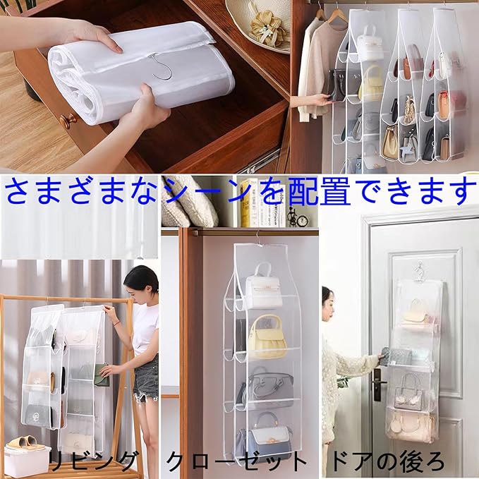 izerhfd(きさ) 鞄 収納 バッグ 収納 クローゼット 収納 吊り下げ カバン収納 バッグ収納 吊るす収納 収納バッグ クローゼット 収納 バッグ収納スタンド カバン 収納 鞄収納 カバン収納 バック収納 収納バッグ 吊り下げ収納 収納棚水洗可能折り畳み式壁掛け式両面収納スペース節約取付容易 (白4層8マス) | oioioichan