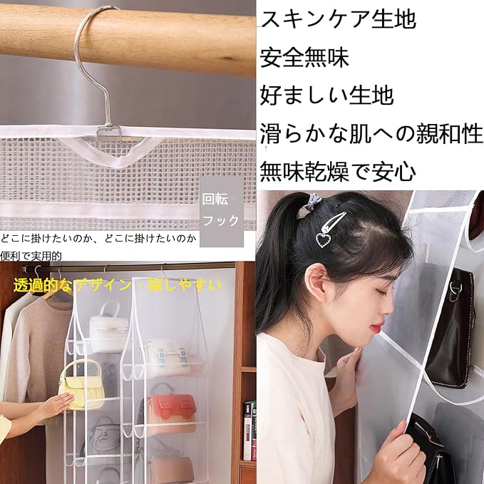 鞄 収納 高品質素材:耐久性のある高品質,かばん 吊り下げ収納 通気性も良く、耐久性に優れています。収納ラック 吊り下げは厳選した厚手の耐摩耗性のメッシュ素材で風通しがよく、よく縫合して、丁寧に製造しております。エッジ部分がよく包まれて、糸が破れにくくて。中身が見やすい。繰り返して水洗っても形が変わらなく、フェードしません。バック収納 吊り下げ カバンかけ 安全で健康的で耐久性があり、美しく実用的で。素材がしっかりしているので、長くご愛用いただけます。