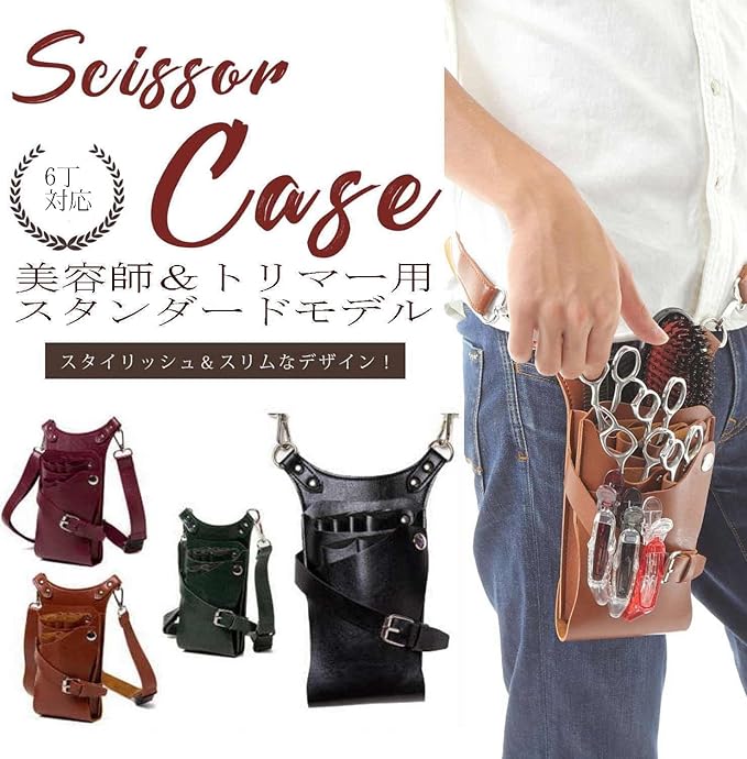 シザー6丁対応の美容師、トリマー専用シザーケース(シザーバック)です。シザーを多種取り扱われる美容師様にお薦めのモデルです。シックで末永くご使用頂けるデザインです。多目的スペースも3箇 所ございますのでシザー以外もしっかり収納でき日々サロンワークでも使いやすくなっております。
