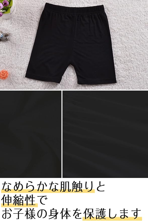 [AFROMARKET] オーバーパンツ アンダーパンツ 女児 スパッツ キッズ インナーパンツ ガールズ 下着のチラ見え防止 3分丈 黒 5枚セット (JP, 身長, 130, 女児用, ブラック) | oioioichan