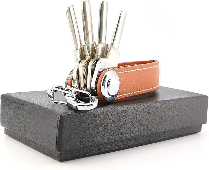 実用&軽量:レザーキーホルダーは、実用的でコンパクトで軽量なデザインが特徴で、あなたのポケットや財布に最適です。あなたのキーは省スペース設計できちんと保管されています!プレゼントとして完璧なギフトボックスが付いています