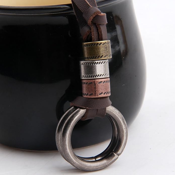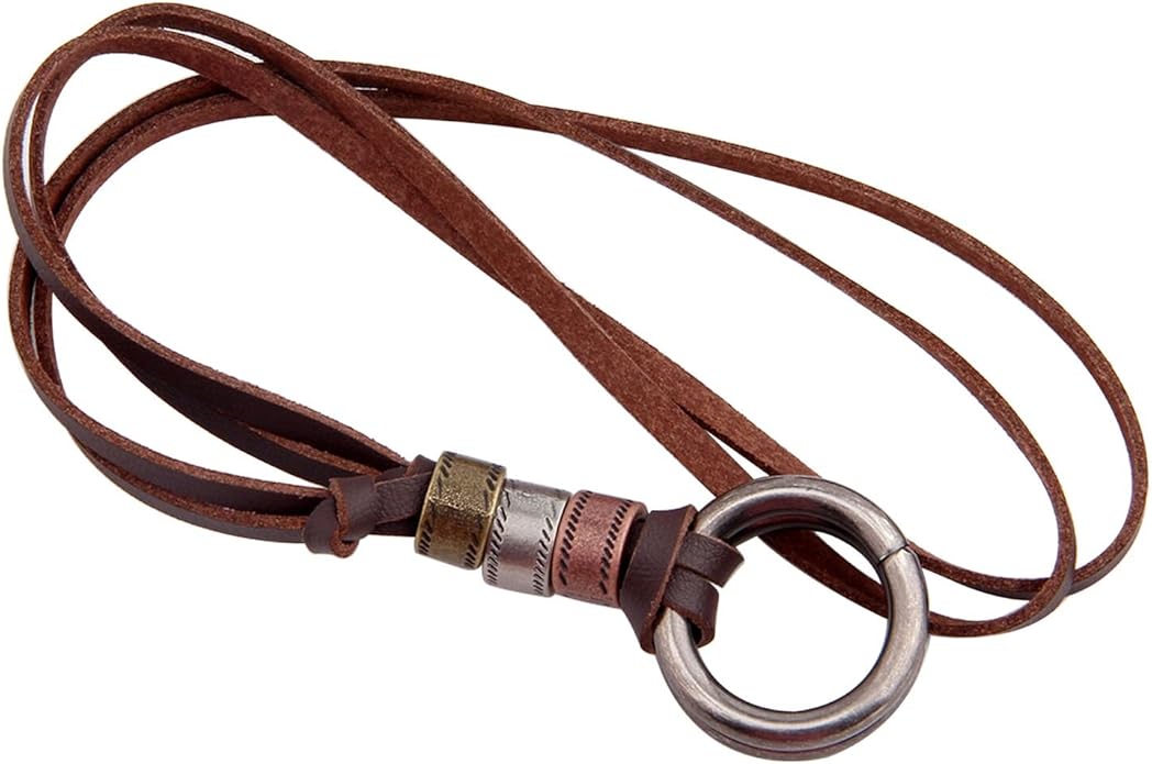 眼鏡、老眼鏡、サングラス用のレザーコード&メタルリングネックレス。