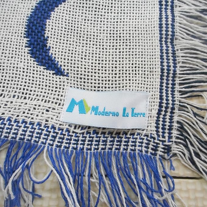 モデルノ ラ テール コットン 素材 130cm 180cm ベッド ソファー マルチ カバー テーブル クロス フリンジ 付き ラグ カーペット マット エスニック ML-CMC クッション (十二星座ブルー)