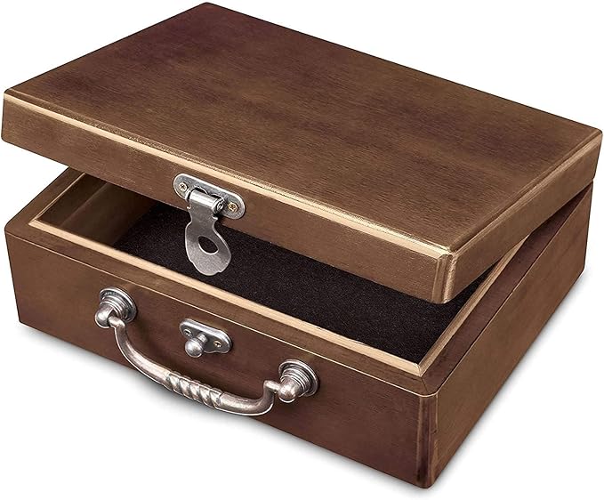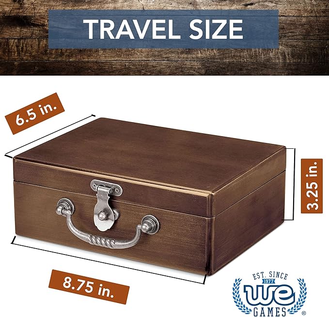 ブラッシュドニッケル開閉部付きウォールナットステンドウッドボード。サイズは8.75 x 6.5 x 3.25インチ。 サイコロとわかりやすい説明書付き