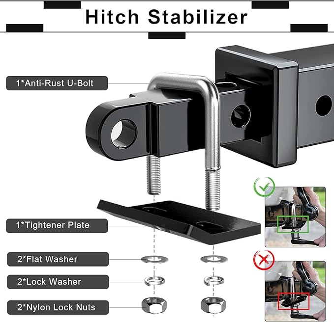 ★ガラガラ防止ヒッチ締め具は、ヒッチノイズ、ぐらつき、ガラガラとヒッチの動きを完全に防ぐように設計されています。荷物キャリア、ヒッチレシーバー、トレーラーボールマウント、自転車ラック、ヒッチラックなどに。 静かな牽引体験をお楽しみください。