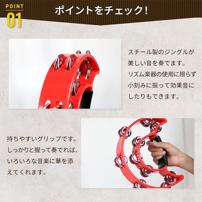 【効果音としても使用可能】タンバリンを小刻みに振ることで、リズム楽器としてだけでなく、効果音としても多彩な表現が可能です。