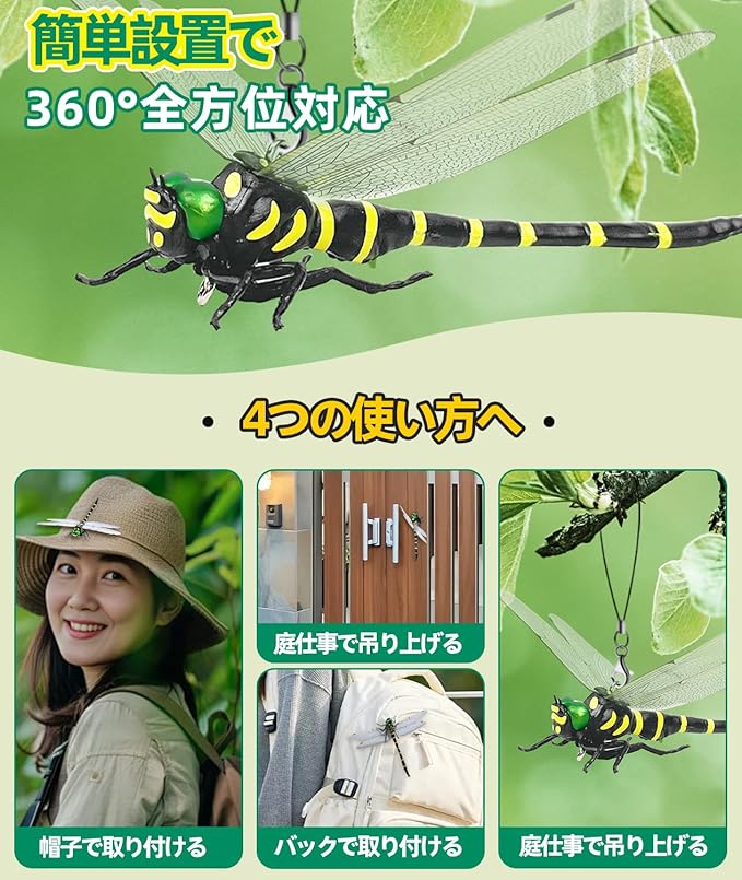 2025年新型「市販最大 オニヤンマ16センチ」虫除けとんぼ リアル 虫除け対策 肉食トンボ 耐久性PVC素材 安全ピン付きストラップ付き 釣り 室内装飾 ベランダ 網戸 室内 登山 渓流釣り キャンプ アウトドアに対応 (16cm-4匹) | oioioichan