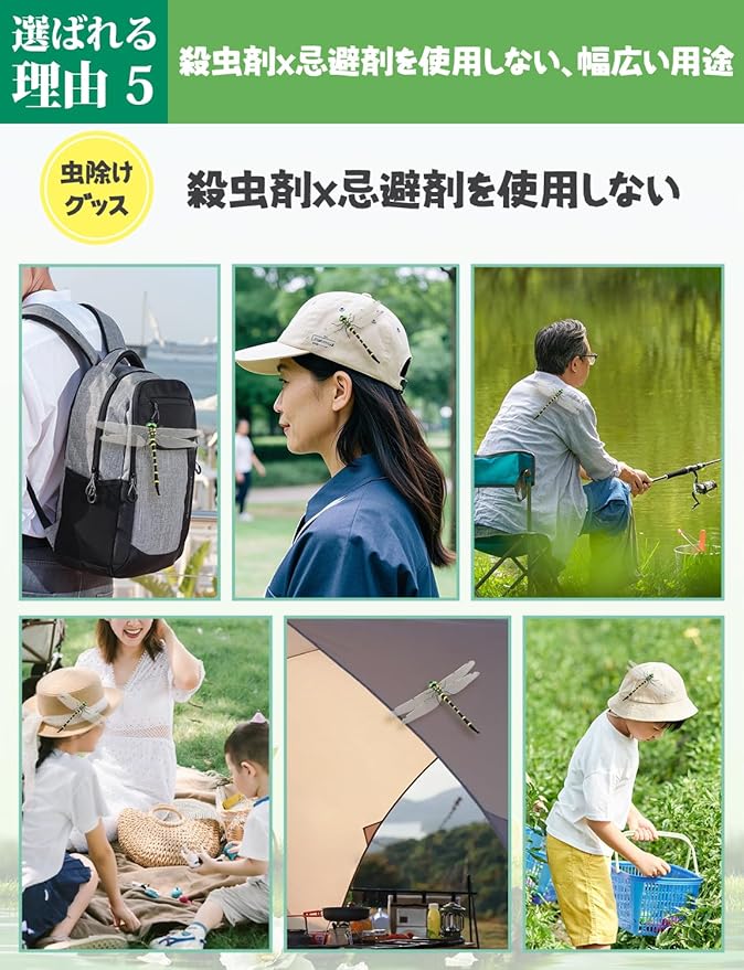 【簡単に使用できる設計】オニヤンマは安全ピンとストラップが付いており、帽子やバックパックなどに簡単に取り付け可能です。特別な道具は不要で、登山やキャンプなどのアウトドア活動にぴったりです。日常生活でも手軽に使用できます。