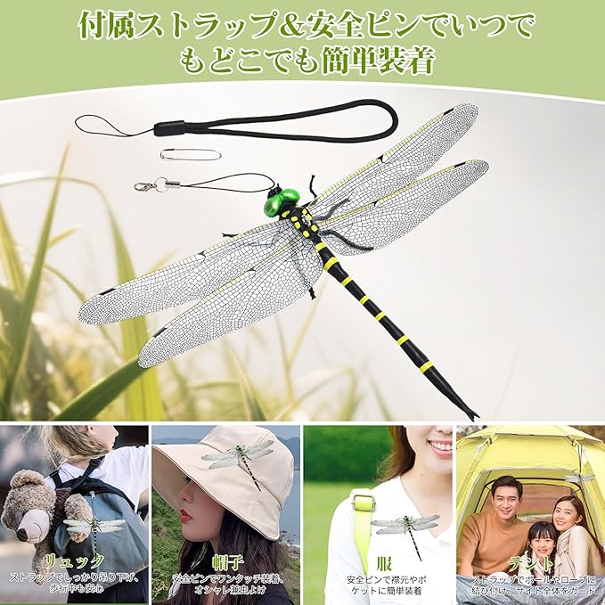 【新しい完璧なデザイン】 2025年型オニヤンマは、尾の形状や全身の模様がよりリアルに進化しました。羽は新しい薄型で丈夫な材質を採用し、耐久性が大幅に向上しました。従来の一体成型デザインよりも破損しにくく、アウトドア活動にも安心して使用できます。より長くお使いいただける耐久性を実現しました。