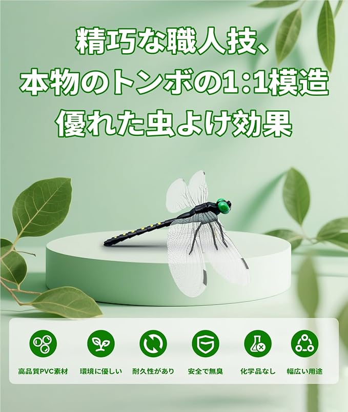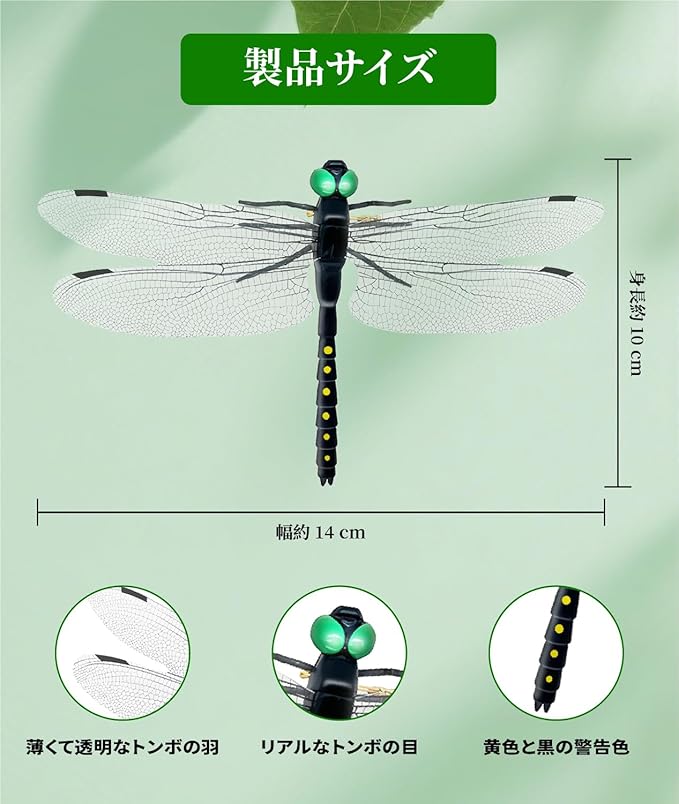 【安全と環境保護】この虫除けトンボは電気や化学薬品の使用を必要とせず、安全で無毒であり、有害物質を生成せず、環境に優しく、子供やペットでも安心して使用できます。精巧な職人技で作られており、味のない外観なので、安心して使用できます。