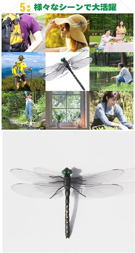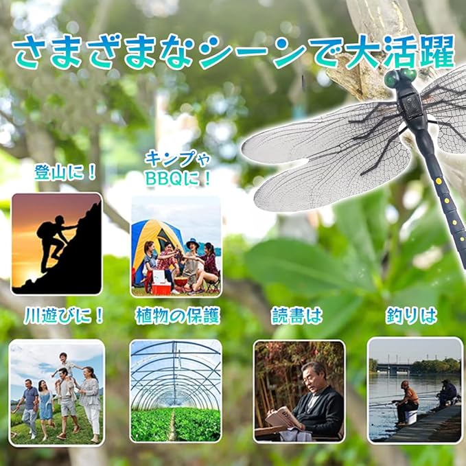 【アウトドアにも安心】夏が来ると河川での釣り 林の中のキャンプ ハイキング バーベキューなど場所によく蚊たちは困せるでしょう。そこで、精巧な作りの虫除けトンボ君の出番です!子供だけでなく大人にも大人気!アウトドア安心に過ごしましょう。
