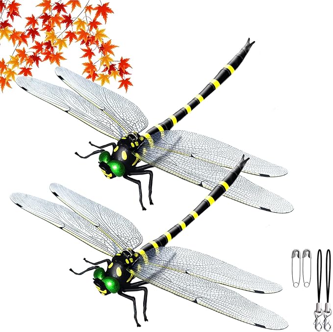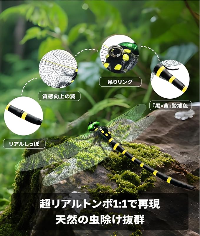 2025新改良16センチ 市販最大オニヤンマ「本物とそっくり」SNS話題人気 PVC材質 安全ピン付きストラップ付き 虫避け動物のプラモデル・模型 釣り 室内装飾 ベランダ 網戸 室内 登山 渓流釣り キャンプ アウトドア 屋外と屋内両用(16cm-2匹) | oioioichan