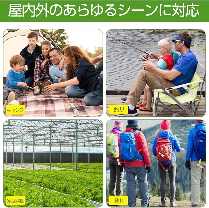 【様々なシーンで活躍】釣り・キャンプ・畑仕事・登山などのアウトドア活動はもちらん、屋内の玄関や窓辺など虫の出やすい場所でも使用できます。安全で無害なPVC素材を使用しており、ご家庭にお子様やペットがいても安心してご利用いただけます。*万が一製品に欠陥がある場合は、専門的なサポートを提供するために私たちのカスタマーサービスチームにお気軽にお問い合わせください。