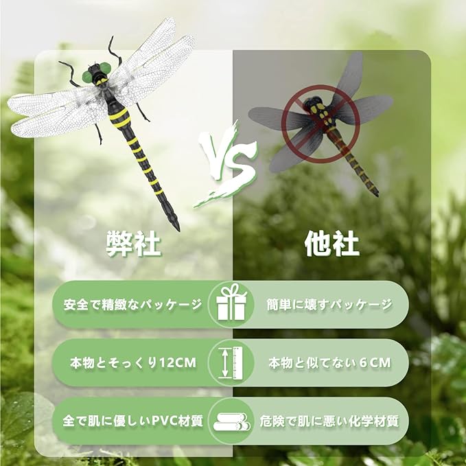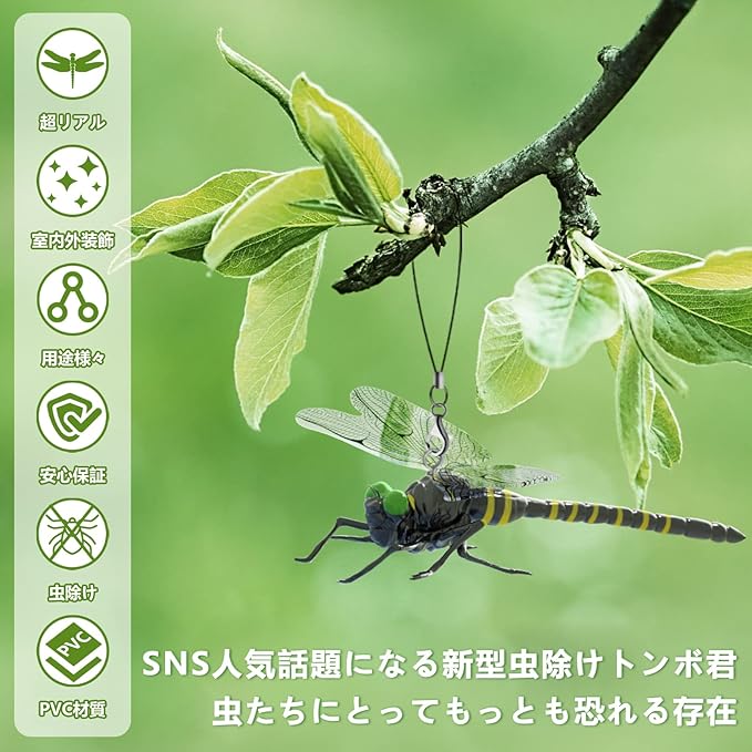 Inesore 虫除けトンボ 正規品 蜻蛉模型 ゴルフトンボ 釣りトンボ 虫避け 子ども向けフィギュア 虫天敵 虫撃退 本物と同じ大きさ12センチ 携帯チャーム 安全無害なPVC材質 安全ピン ストラップ付き ベランダ 網戸 屋外室内装飾 玄関 部屋 登山 山登り 虫避け対策用品 家庭菜園 キャンプ アウトドア | oioioichan