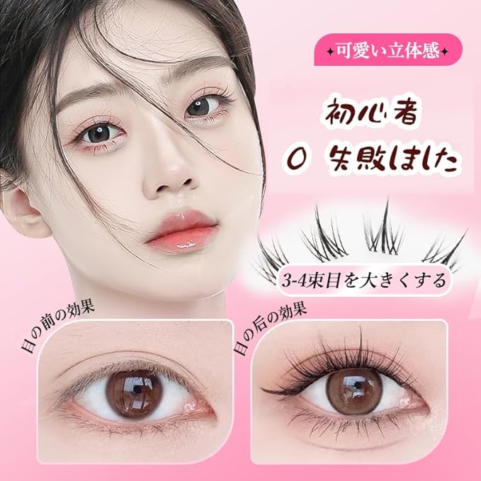 【自宅でマツエク】最新の自己粘着技術を採用し、接着剤を使わずに直接まつげの根元に装着可能。数秒で簡単に装着でき、手間いらずです。目立ちにくく、 丈最新の自己粘着技術を採用し、接着剤を使わずに直接まつげの根元に装着可能。数秒で簡単に装着でき、手間いらずです。目立ちにくく、一日中丈夫なまつげを保られます。