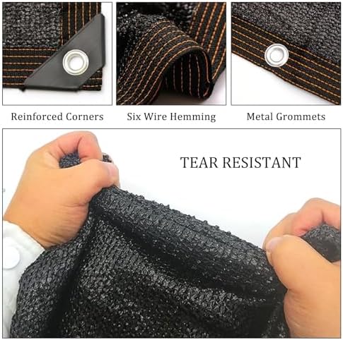 シェードセイル サンシェードネット 70% シェードクロス、日焼け止めシェードネット 2 3m 2 5m 3 3m 3 4m 3 5m 3 6m 4 5m 4 6m 5 5m、ガーデン温室植物用シェードネット、ブラックシェードメッシュタープ、シェードセイル、グロメット付き、ブラック-9