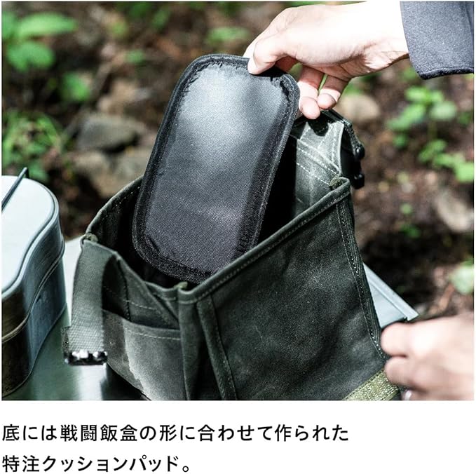 各社の戦闘飯盒2型、雷鳥飯盒が全て入ることを確認しています。ツルが長いタイプの戦闘飯盒2型も収納可能です。