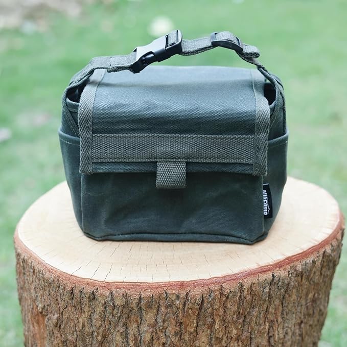 【素材】本体:コットン100%(パラフィン加工)、裏地:ポリエステル100%、持ち手:ポリエステル100%、バックル:プラスチック(ポリアセ樹脂)、芯材:PE(ポリエチレン)発砲シート
