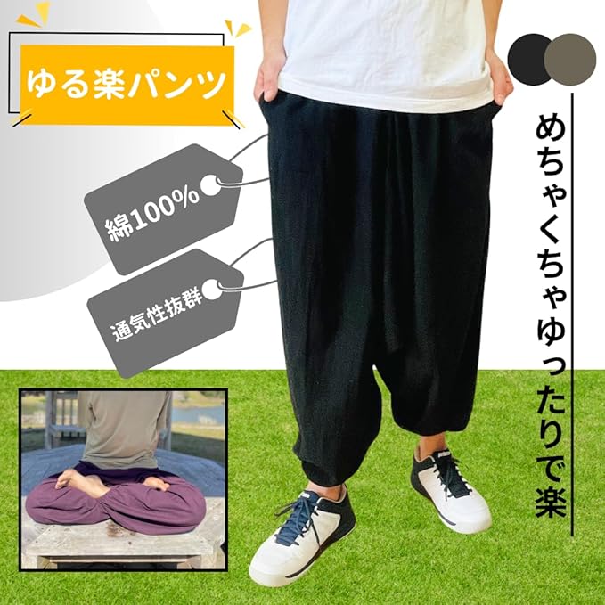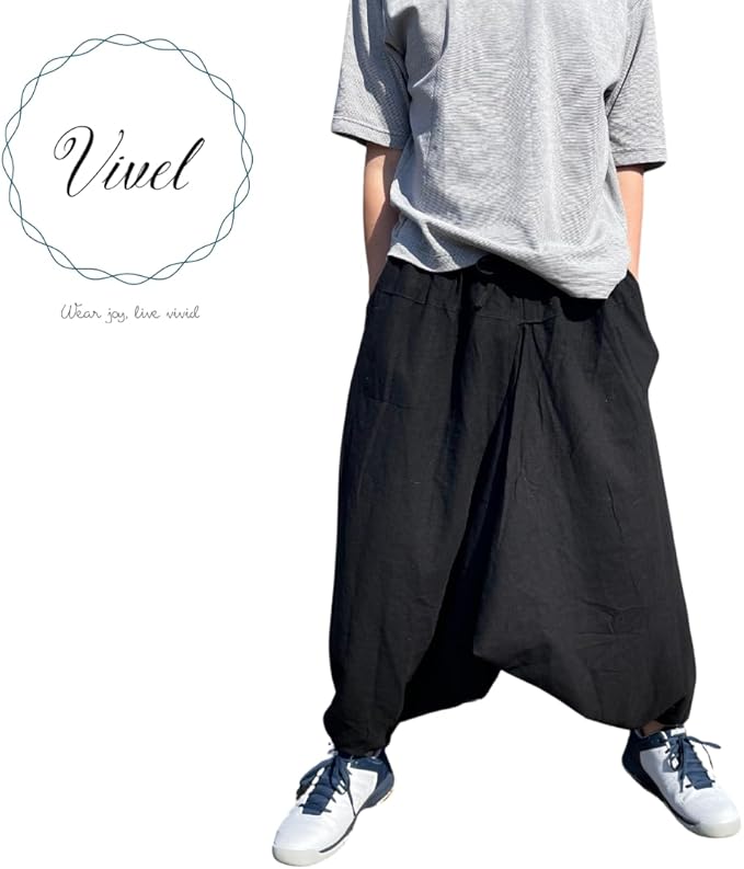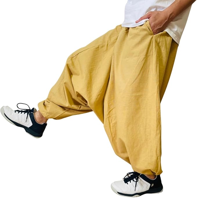 [VIVEL] ゆったり コットン100% サルエルパンツ メンズ アラジンパンツ 袴ズボン 無地 ウエストゴム 裾リブ 裾絞り パンツ サルエル ズボン アウトドア ダンス | oioioichan