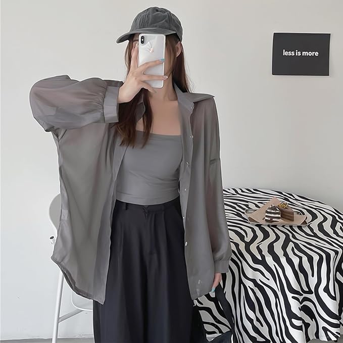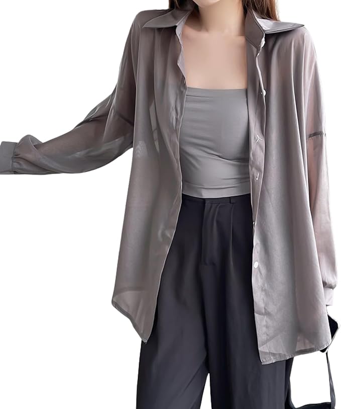 シンプルでどんなボトムとも相性抜群なのでとっても使いやすい、パンツ・スカートどちらにも合わせやすいアイテムです。キャミに羽織れば、冷房対策と肌露出調整が同時達成。フローラルワンピの上から軽くまとえば、透ける光沢が女性らしい立体感を演出。フロントボタンを外すだけで違った印象に。流行や年代にとらわれない、どんなシーンにも対応可能!女性らしいフェミニンな魅力が引き立のシアートップスで 。オフィス、デートやパーティ、結婚式、二次会、お呼ばれ等 幅広く活躍して頂けます。(20代、30代、40代、50代)問わずお使いいただけます
