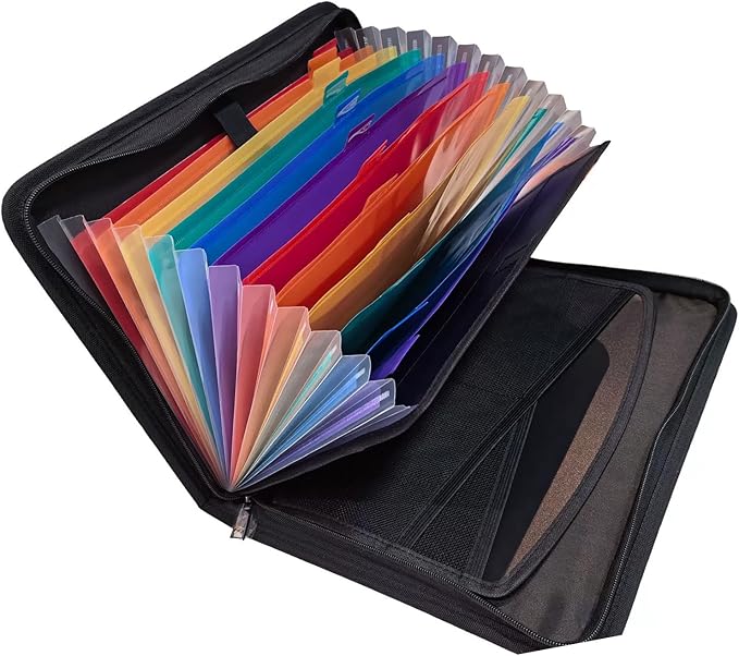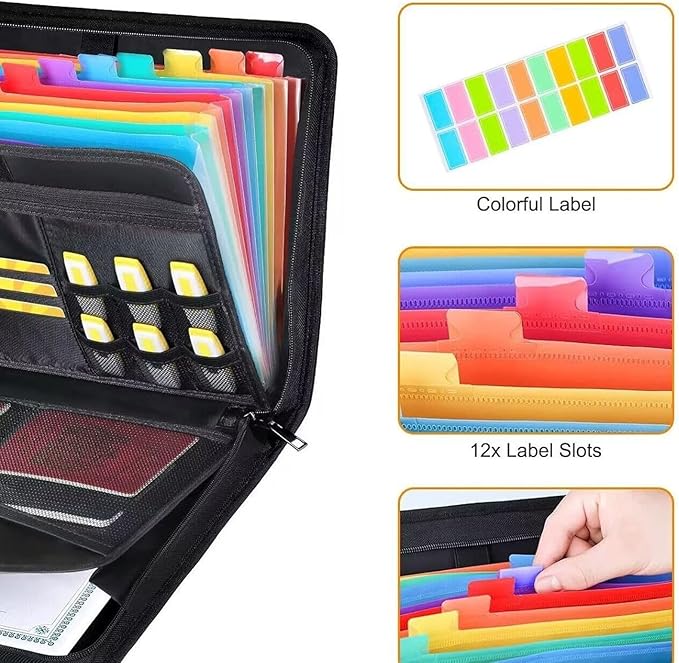 【カラフルなラベルとダブルジッパー】ファイルの整理を強化するために、このドキュメントフォルダーオーガナイザーにはカラフルなラベルが付いています。ラベルは、ファイルを効果的に分類するのに役立ちます。