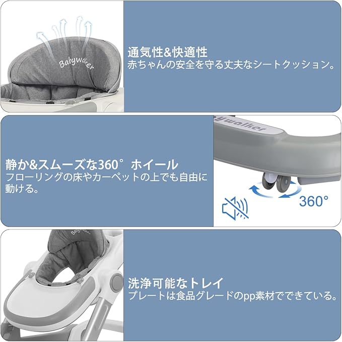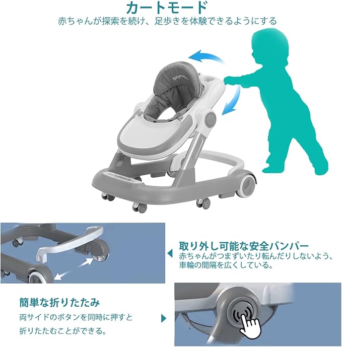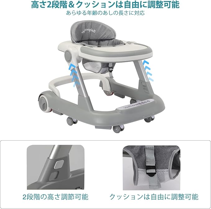 UBRAVOO 歩行器 2in1 ベビーウォーカー 赤ちゃん 折りたたみ 高さ調整可能 手押し車 横転防止 コンパクト 収納便利 ベビー用品 おしゃれ 出産祝い プレゼント 6~18か月 (はいいろ) | oioioichan