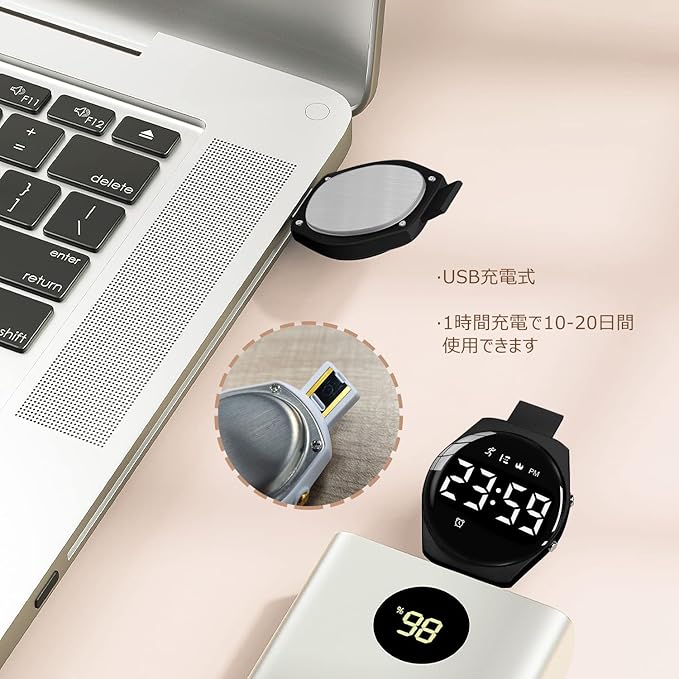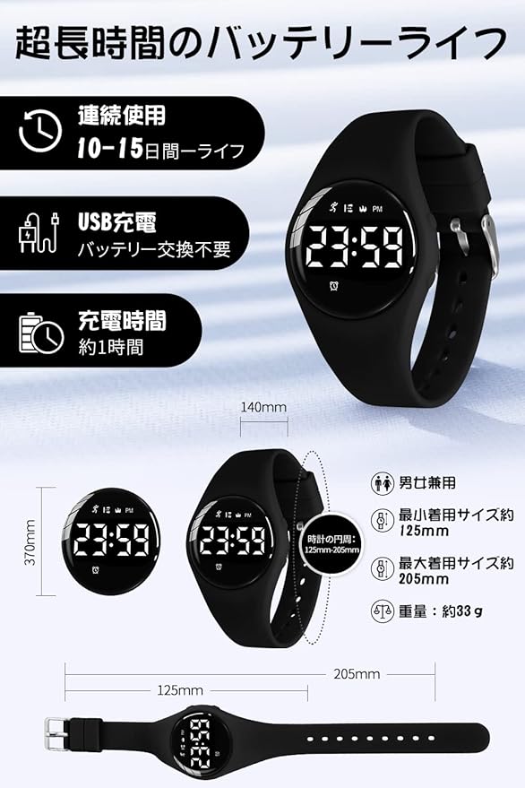 ❤[USB充電式-長持ち.]:充電式 デジタル腕時計は便利な充電式のデザインを採用しており、使いやすく、電池交換も必要ありません。高品質.を採用しており、寿命が長い。腕時計の文字盤を直接usbアダプタに差し込むだけで充電ができ、充電器を紛失する心配はありません。通常は1時間充電して、10~15日程度ご利用できる。