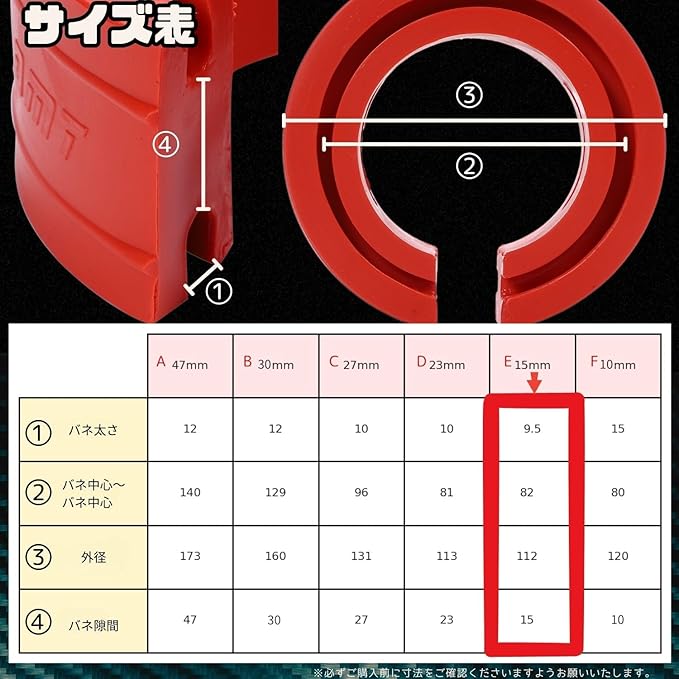 5. 汎用設計 幅広い車種に対応可能。適合スプリングの線間サイズに合わせてお選びください。