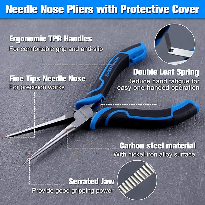 【用途】この先細ラジオペンチは細長く尖った顎で、細かいものを楽に掴んだり離したりすることができます。歯の付いたジョーは、ジュエリーや部品に傷をつけず、細かい部品を掴んだり、ワイヤー、アルミワイヤー、合金ワイヤー、その他の金属ワイヤーを曲げたり巻いたりするのに使用できます。細長い顎は狭い場所での作業に適しており、細かい操作がより簡単になります。 電気技師、職人、ジュエリー・メーカー、美術工芸、その他の趣味に便利なツールです。