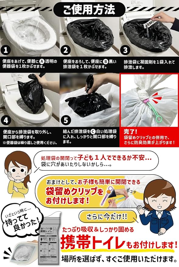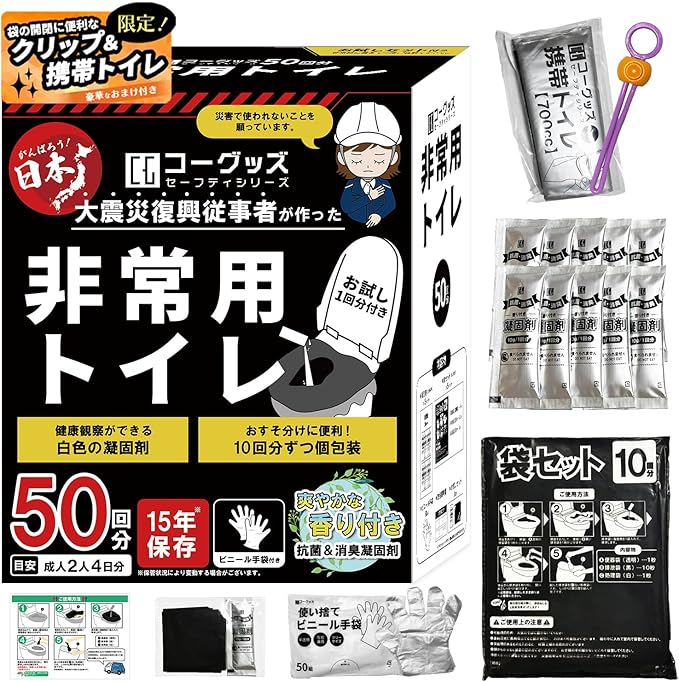 【大震災復興従事者が全力で作り上げた】 簡易トイレ 非常用トイレ 防災グッズ 災害用トイレ (+車用トイレ&袋留クリップ おまけ付き) 災害用 ポータブルトイレ 防災 トイレ 災害 車 渋滞 簡易トイレ(50回分) | oioioichan