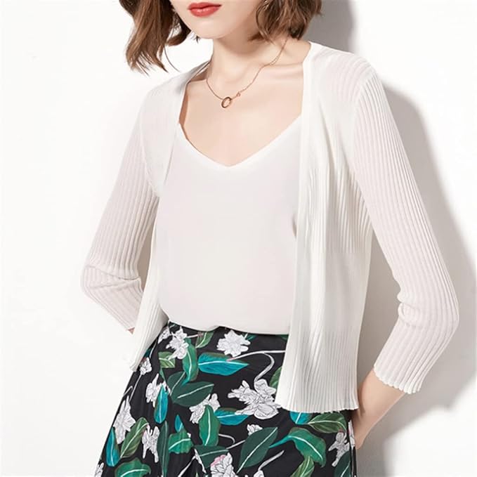 GDDZA 春夏物薄手ニットカーディガン七分袖ショートスリムフィットボタンレスジャケット(L/code)
