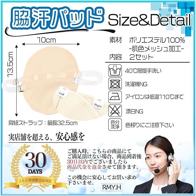【快適!脇汗パッド】腕を上げるのがハズカシイ・汗じみのニオイがきになる・お気に入りの服を汚したくない傷ませたくない・服が湿って1日不快・寒い/黄ばみが気になる/そんな悩みを解決する脇汗パッドをオススメします。【詳細】素材:ポリエステル100%、肌色(ベージュ)メッシュ加工、2セット。お洗濯の際のご注意点「40℃限度手洗い」「洗濯機使用不可」「アイロンは低温110℃まで」「漂白は避けて下さい」「色移りにご注意下さい」