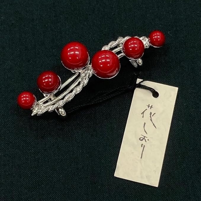 帯留 パール シンプル 赤 花しおり 大原商店 帯飾り 日本製