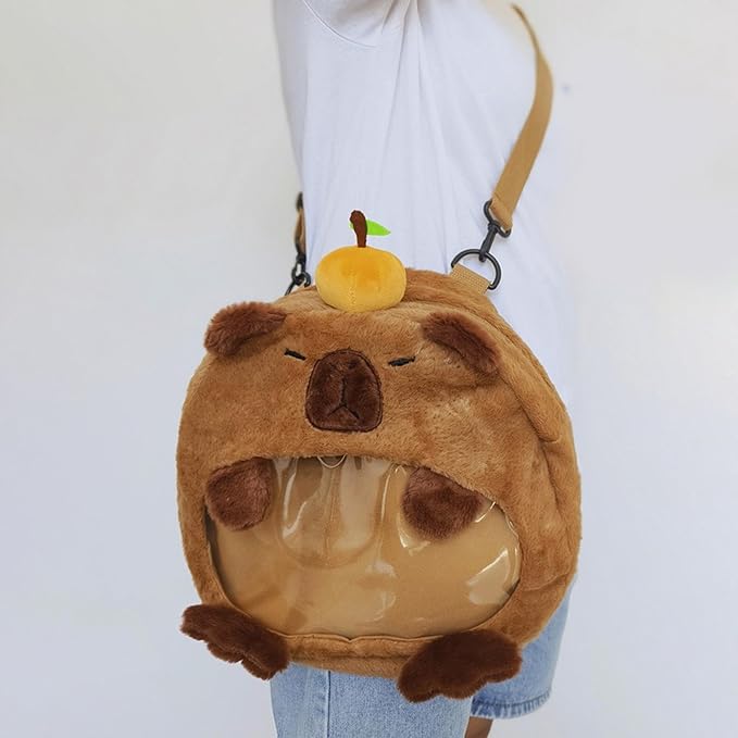 【ぬいぐるみのカピバラのバックパック】: 愛らしいぬいぐるみのカピバラのバックパック、とてもシックで面白い。プレミアムジッパー、滑らかでプレミアム。サイズ32cmx26cmx9cm。