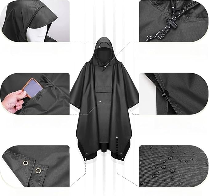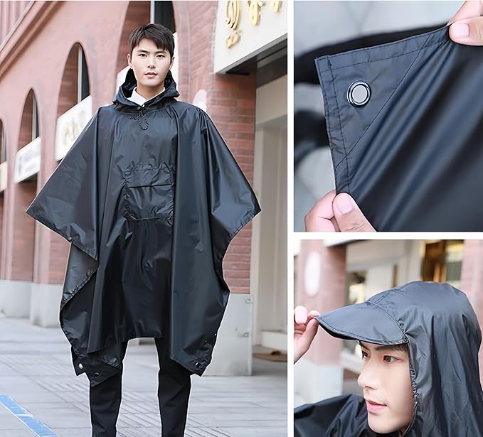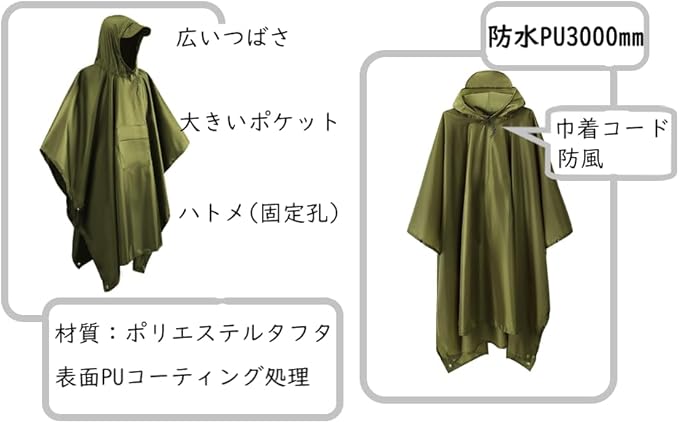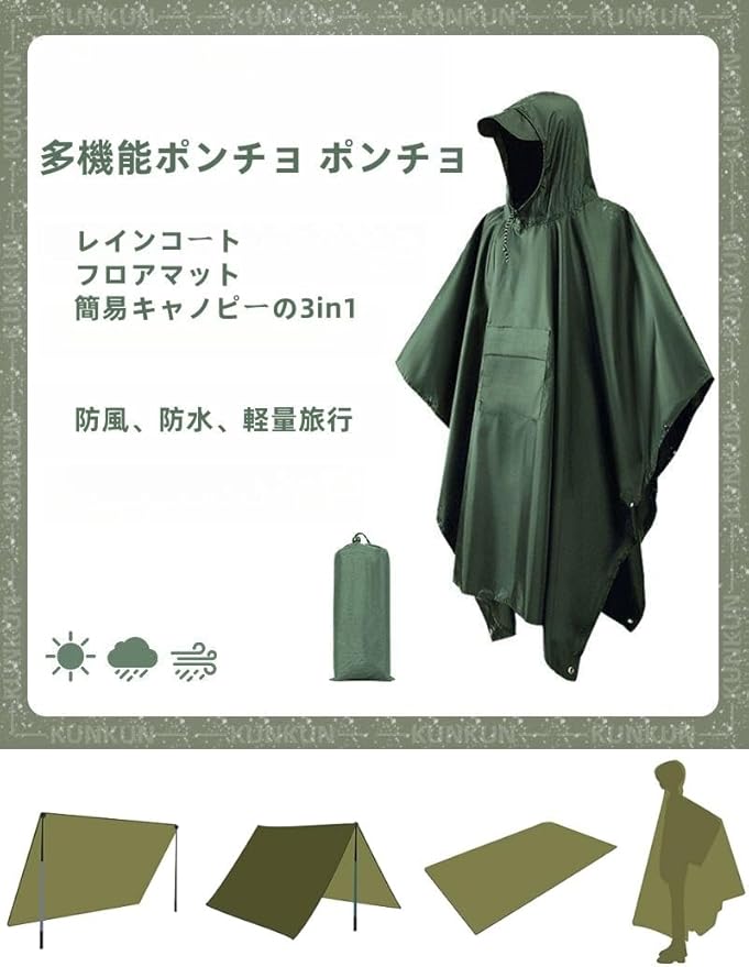 [Kulangsu] レインコート レインポンチョ 多機能 3way レインウェア タープ グランドシート 防水 帽子 耐久性 雨具 カッパ バイク キャンプ ピクニック 通勤 通学 キャンプ アウトドア 釣り 撮影 登山折り畳み 収納袋付き | oioioichan