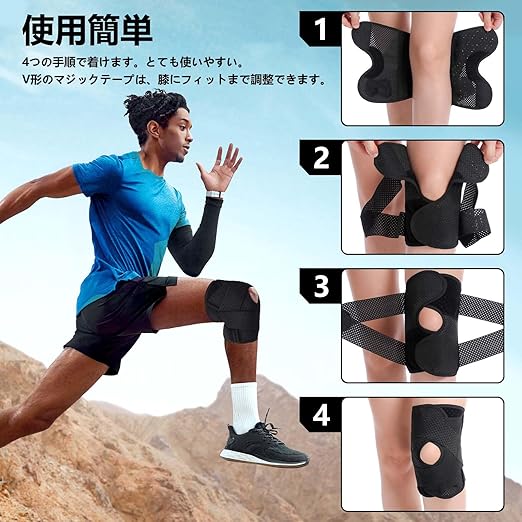 【360 全面保護】この膝サポーターはオープン膝蓋骨とバックデザインは、膝蓋骨への圧力と汗の蓄積を避けることができます。膝に巻くV型マジックテープを2本追加し、膝の上下に交差して、膝蓋骨のカーブに360 完全にフィットし、損傷の回復とスポーツによる怪我に。選択に応じて気密性を調整し、膝の圧力を修正し、傷ついた筋肉、靭帯、腱にテーピングやサポーターを用いることで、それはモビリティを犠牲にすることなく、潜在的な傷害から膝を保護します!