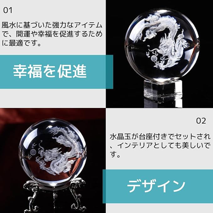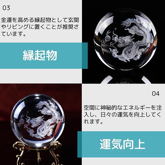 【開運・幸福促進】この龍の玉は、風水に基づいた強力なアイテムで、開運や幸福を促進するために最適です。龍の精巧なデザインと水晶玉が組み合わさり、インテリアとしても美しい存在感を放ちます。