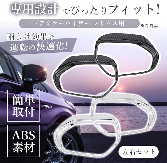 雨天走行時の視界確保+ドレスアップ!カスタマイズで他車と一線を画す高品質ABS素材ドアミラーバイザーになります。