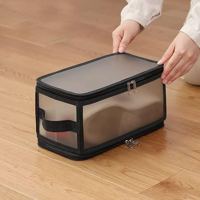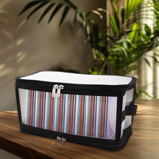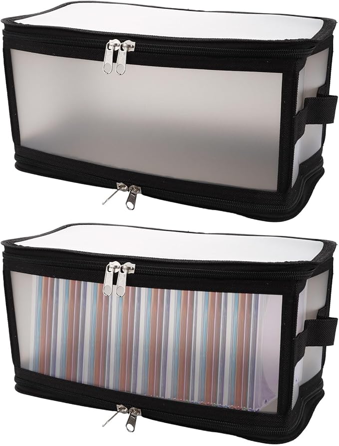 2個セット CD収納ケース 約25~30枚収納 30X15X15CM 重ねて置ける ダブルスライダーで開きやすい 折りたためてかさばらない 取り出しやすい持ち手付き 軽量 小物の保管にも (黑) | oioioichan