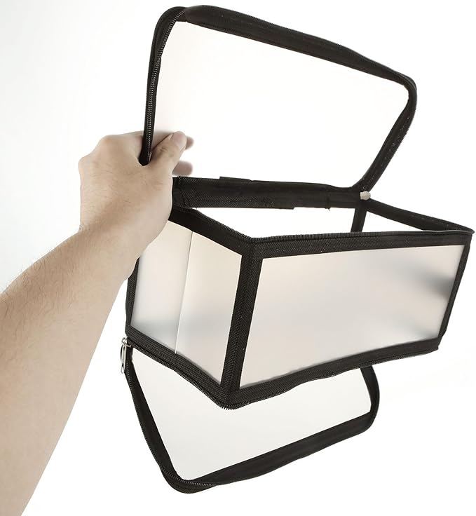 【積み重ねもOK】上下にジッパーがある組み立て式のケースなので、使わないときは折りたたんで隙間に片付けられる。片側サイドに持ち手付きでで持ち運びが便利。