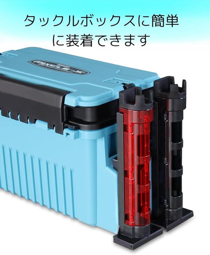 丈夫なタックルボックス用ロッドスタンド:タックルボックスに取付られるロッドスタンドです。防波堤釣り、サーフ釣り、船釣り等でタックルボックスにロッドを立てて収納できるので釣り最中の身の回りの整理整頓と足元の安全確保に役立ちます。これ一つで手持ちの釣り具をスマートに収納し、釣り場での準備や片付けの手間を省きます。また頑丈なABSプラスチック素材を採用し、水や錆びに強いので、厳しい釣り環境にも耐えられます。長期間にわたって安心して使える品質を.します。
