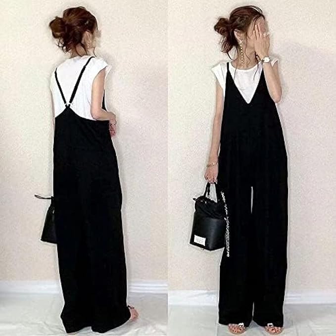 [売店] サロペット オーバーオール ワイドパンツ レディース オールインワン パンツ ロング丈 ワイド サスペンダー サロペットパンツ ジャンパー ズボン パンツドレス つり カジュアル 春夏 ロングパンツ 体型カバー 通勤 美脚 通学 | oioioichan