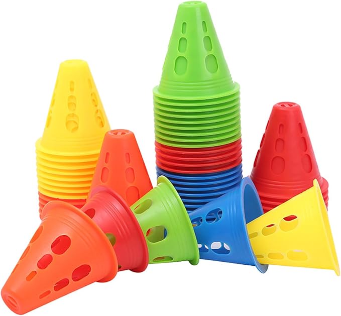 【ミニマーカーコーン50個セット】明るく鮮やかなカラーの三角コーンで、コーナーリング、ラインや着地ポイントなどの目印に最適です。