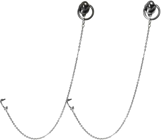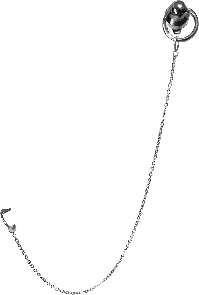 唇フェイクピアスとピアスがチェーンで繋がったデザイン